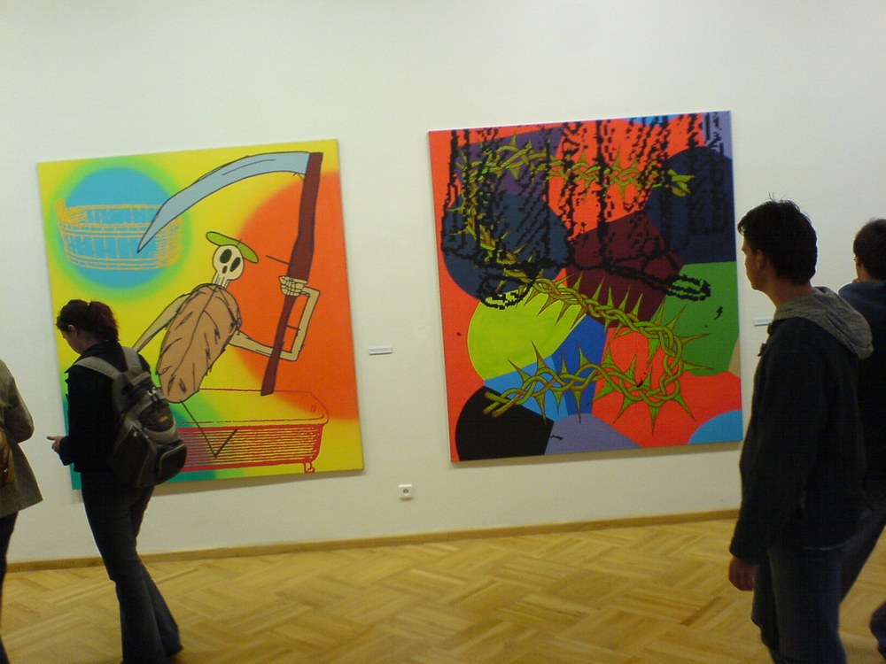 Vernisáž barevně i námětově výrazných a nespoutaných "závažných jásavostí" se v Brně konala 11. září 2007