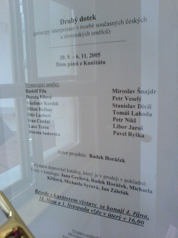 MalejMourek: jo, kamo, pekne zaramovane. Cela takova jedna mistnustka tam byla, proste vzorna instalacka. Jenze kdo si nekoupil katalog, tak o hodne prisel, protoze tam jsou zaznamy akci, ke kterym ani zadna fotodokumentace neexistuje. A takovej katalog, to nejni zadna legrace, to stoji nekolik stovek! Ja jsem si ale jeden exemplar podvratnym zpusobem vyzebral, cimz jsem sice znechutil chudaka Horacka, ale za to poctenicko to stalo