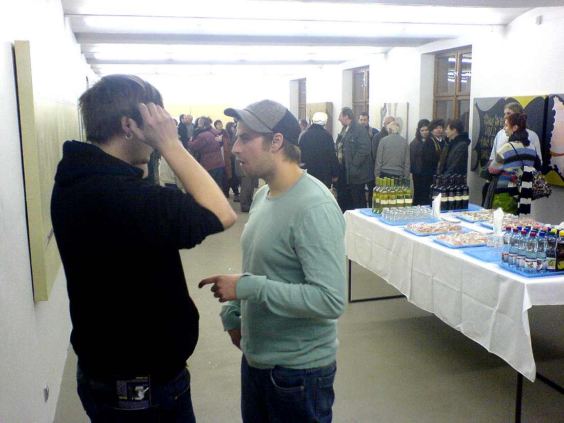 Zaslechl jsem několik kritických hlasů mladých umělců k instalaci ("...hezky za sklem, to už je vole, jak Mona Lisa"). Důvody bezpečnostní adjustace jsou pochopitelné - a tak raději za sklem, než vůbec. Nevšiml jsem si ale žádného občerstvení - ne že by bylo nutné se na zahájeních nacpávat, ale občerstvení je příjemné. To už nezbylo ani na limonádu?