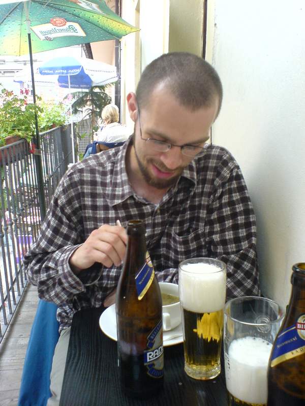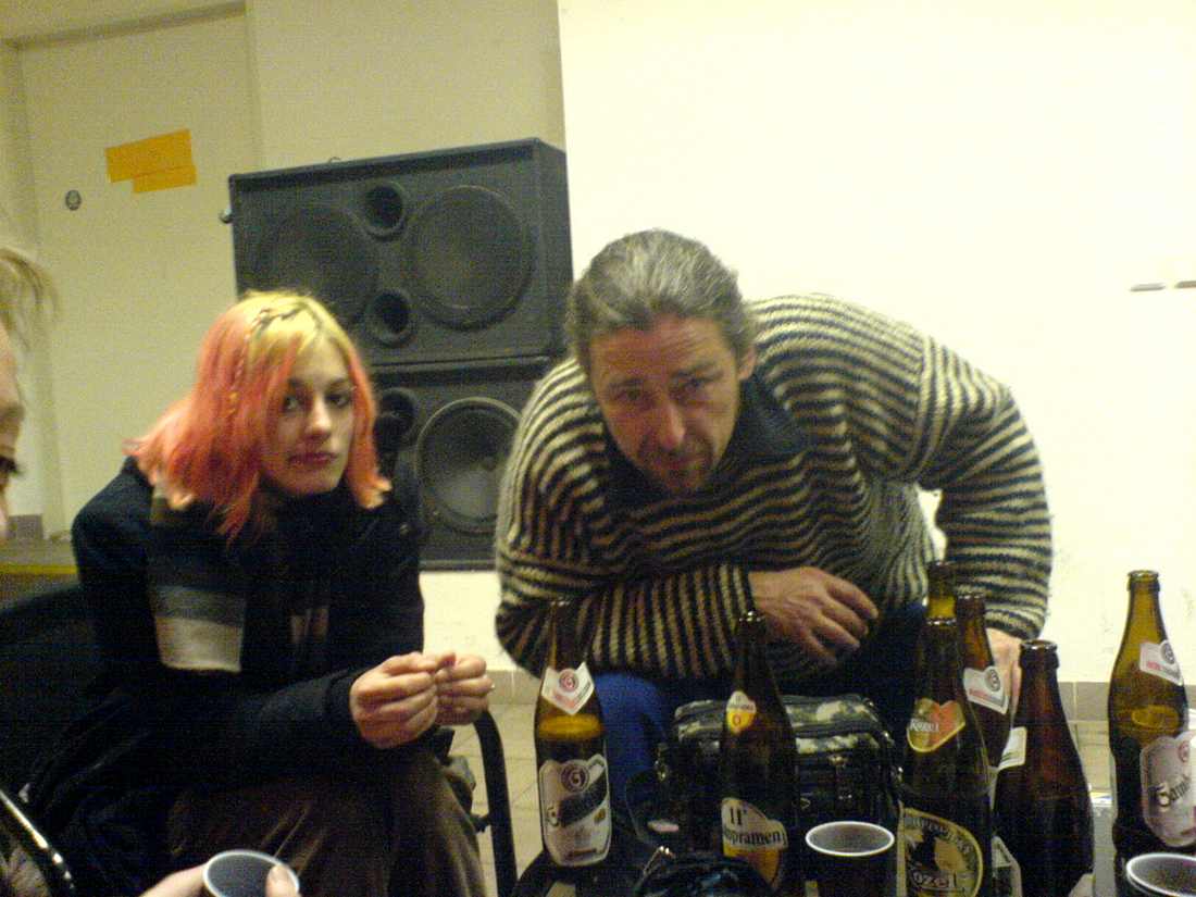 takže tenhle výlet pro mě začal tejden před celou tou akcí,když sme s lukinem u něj doma ve Šťáhlavech připravovali tyče na tee pee.Vlastně ještě tejden předem sme se snažily ve škole sešít plátno na tee pee.Ale to už je detail.Po tom co sme ty tyče vytahali z jakési podivné rokle u zahrady ,a oštípali je v těsné blízkosti žumpy , jsme je naložily do auta.byli od spolujezcových nohou,přez celé auto až ven a to ještě pjeknej kousek.hádám tak 1,5 metru.takhle sme vyrazily do Brna,kde sme se druhej den pokusily tee pee nanečisto postavit.Dopadlo to docela dobře.Z brna sem odjížděl dřív,takže sme si dali sraz se zbytkem punkwy u náčelníka v Limuzech.Tam sme strávily jeden pohodovej večer u ohně a buřtů.Nějaký vínko bylo a pár brček taky.jak řikam příjemně pohodovej večír.druhej den sme ale museli vstávat asi v půl sedmý,což byla docela pruda.Ale i to naše neochvějná skupina zvládla na výbornou.Taky sem byl překvapenej!Na Holešovickou tržnici sme dorazily s verčou v námořnickém tričku jako první.Nikde nikdo z akády .Když sme se o tom bavily s Verčou tak utrousila, že sou to rozmazlený pražáci,takže počítá že tam budou tak na 11.Taky sem byl překvapenej.Nicméně Punkwa opanovala prostor i tak.Postupně se začali trousit různý kočénky v mini sukních atak a začaly předstírat prodej.Časem vyplynul na povrch jejich skutečný zájem o tuto akci.Nejvíce zájmu o ní projevila jedna Pipinka jejíž jméno sem radši rychle zapomněl, která k nám přišla a direktivně se začala dožadovat svého prostoru.Po naší odpovědi,že se nám moc nechce ustupovat z obsazeného prostoru začala vytahovat něco ve smyslu: "Hala tohla je ale NAŠE školní akce a vy ste si tady jako zabraly nejvíc místa!!!"No tak sme vyšli vstříc a trochu místa uvolnily.Pak si na místo které vybojovala v litém boji dala stánek jak z kinder vajíčka.V průběhu dne pak toto nově nabyté území opustila ,aby mohla dobýt nové místo o 5 metrů blíže hlavní bráně a zvětšit tak možnost prodeje.Naprosto IMPERIÁLNÍ zážitek!Tak to bylo z prvního dne asi tak největší zážitek.Moc se toho neprodalo,ale parádně sme si užily našeho squatu.Lidi se ptaly jestli v tee pee někdo spí,co je to za akci a tak podobně.Zbyňa neustále dělal vynikající bramboráčky,který všem strašně chutnaly.Kolem pátý sme to zapíchly a vyrazily směrem k provizornímu domovu.Zbiňa s Hanou aklucíma k nějakejm známejm a Lodek+Ála,Já+Verča a Luko ke strejdovi na Žižkov.Když sme si odložily věci,šli sme na pár kuosků v rámci Žižkova.Potom sme šli na zahradu grilovat.Pohodička pokračovala.Druhej den sme do holešovic dorazily asi kolem 10.Punkwa opět rozbalila stánek a vrhla se do světa byznisu.Kšefty šli už o trochu líp a tak byla i lepší nála da v komerční části naší mysli.Jinak nic zváštního.Holkám skoro koukaly pekáče i mlíkárny a nám dalo dost práce to všechno fotit.Teda až na Álu,Verču a Hanu.No holt holky?!?.Večer sme se pjekně vožraly u Martina na bytě.Byl tam jeho kámoš a dovezl nějakou slivovici.kolem 11:30 sem s lukinem, vyrazil pro nějaký cíga a natrefily sme na vinárnu,kde mě začal balit nějakej chlap.Nakonec tam neměly žádný kloudný cíga tak sme vzaly litr a půl bílího a šli zas o dům dál.Vprůběhu večera sme několikrát volali do Rádia 1 nechali si zahrát pro Punkwu a pro Petra Kvíčalu od Punkwy.Pak nám už deejayové nebrali.Taky sem se divil?!?No třetí den byl zároveň dnem posledním.Prodeje dosáhly maxima a večer byla vernisáž.Vernisáž byla pekelná a "alternativní".Byla tam kapelka,vínko,kočky atak .Asi po hodině trvání vernisáže přijel kamion zásobování Mc Donald.Dav se rozestoupil a následně se za kamionem zavřel.Napíchali sme mu do chladiče růže z krepového papíru,Hana mu chladič postříkala šlehačkou a pak sme se všichni před ním s logem Punkwy vyfotografovaly.Po skončení chtěla Verča B.kamion opláchnout,tak na něj chrstla vodu,kterou používala na omývání sádrových odlitků stop.PEKLO PUNKWA!!!Fakt to byla prdel.Když to všechno skončilo jela Punkwa s náčelníkem a verčou do hospody na letnou.V tu dobu už byla Punkwa opojena vernisážovým vínem.Na letný dala pár piv a a detaily se začali zahalovat mlhou.Karbuse si moc nepamatuju,ale asi taky byl pěkně.Lodek dostal škytavku a lukinovy se začaly mastit vlasy.To byl závěr akce Punkwa na Kontaktních místech v Holešovické tržnici.the PUNKWA end
