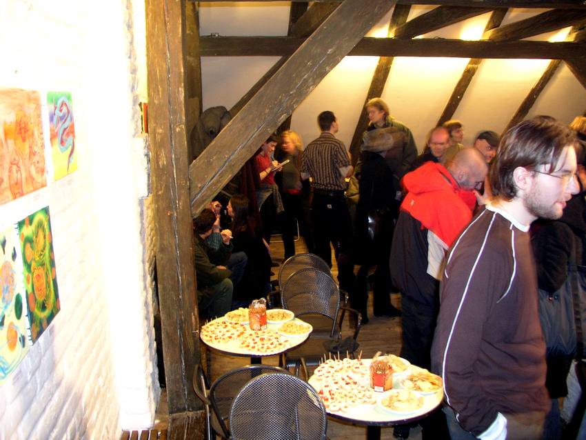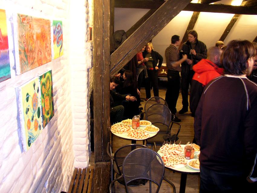 Jirka Lukeš etc., and also a selection of more than 100 paintings made by people participating on workshops. Part - sponsored concert of Idiosyncratics (BE) and