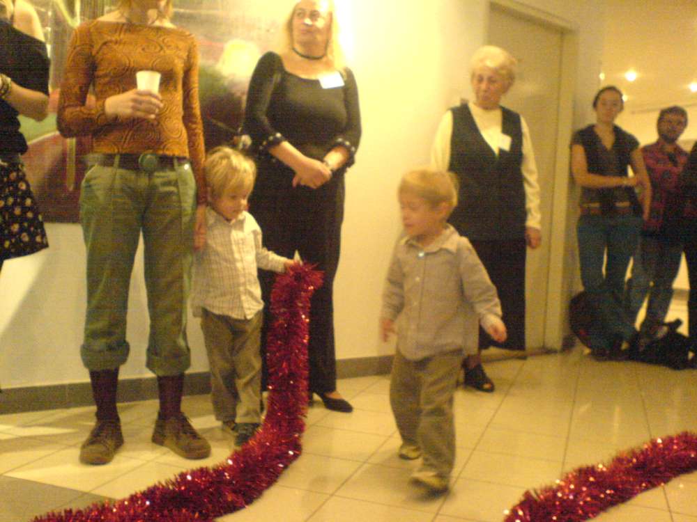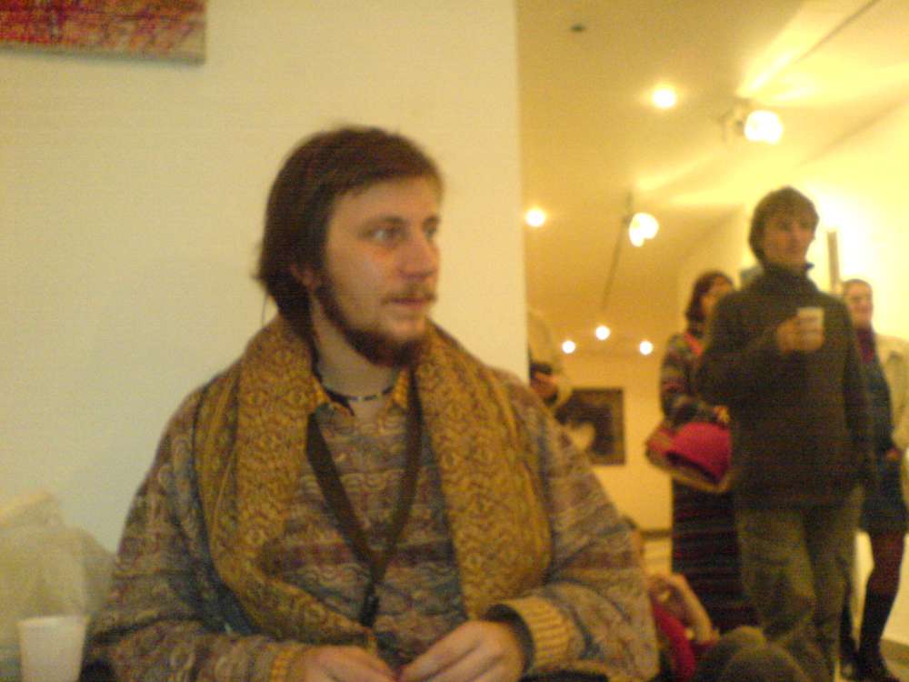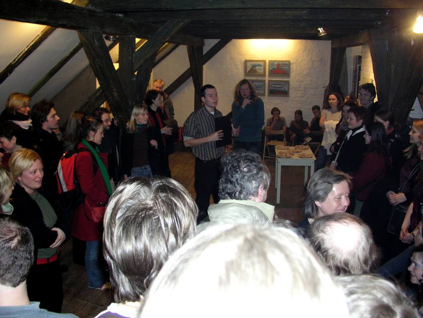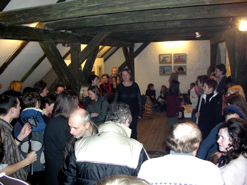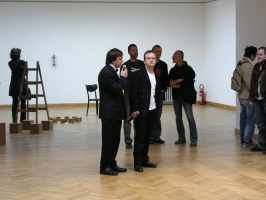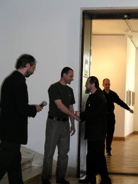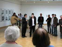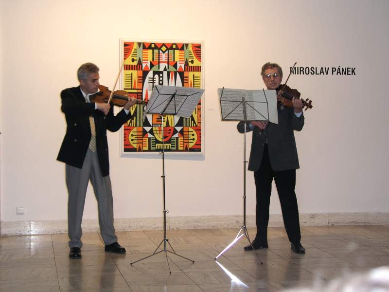 Before the second opening we could listen to madrigal of Bohuslav Martinů by duo of virtuos violinists. Also exhibition of Tomáš Lampar, located in the first floor introduced Jiří Valoch. The author was looking shy but seriously.