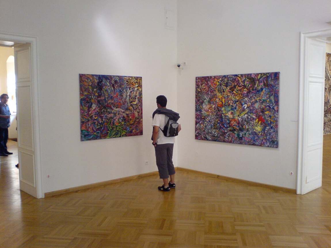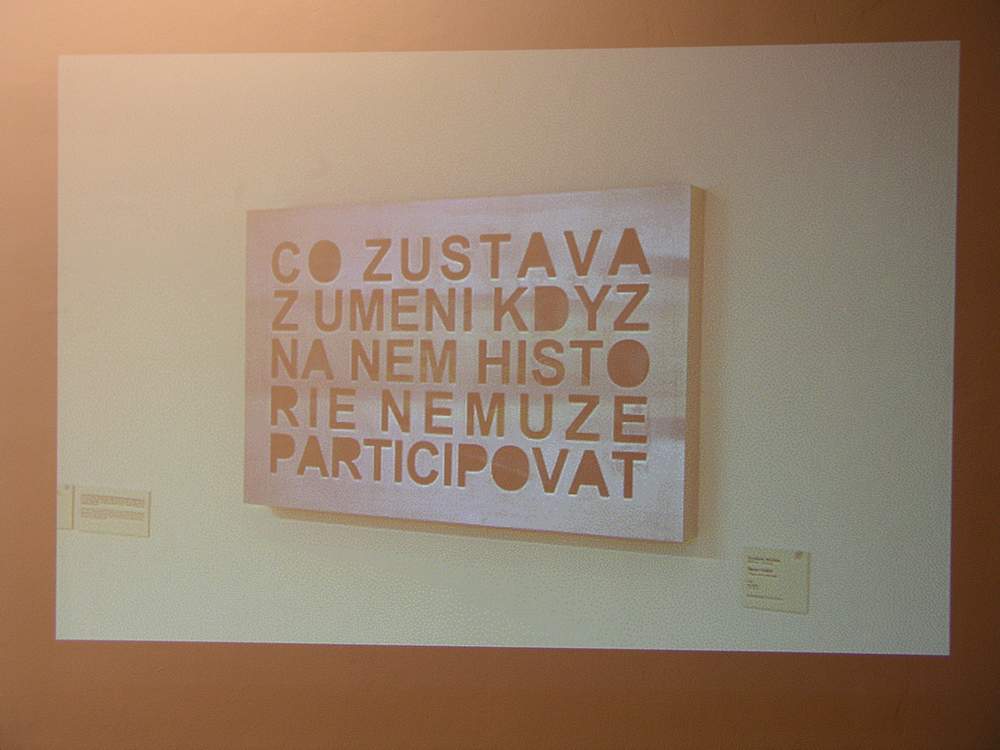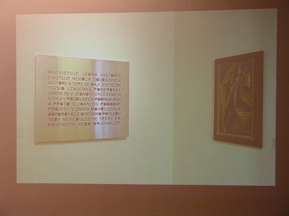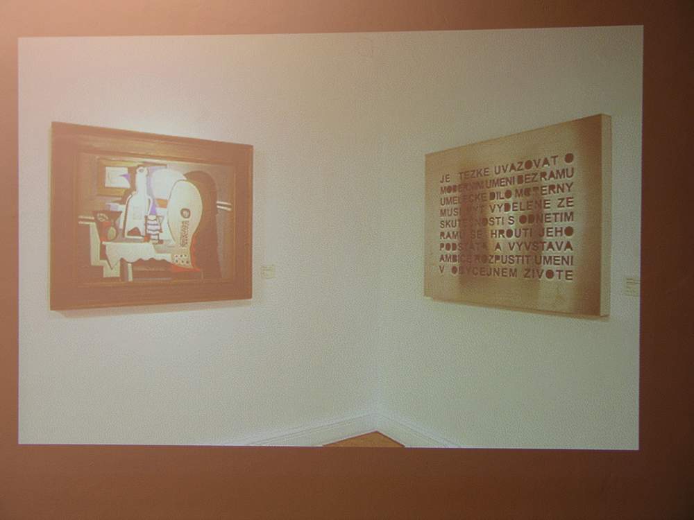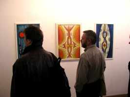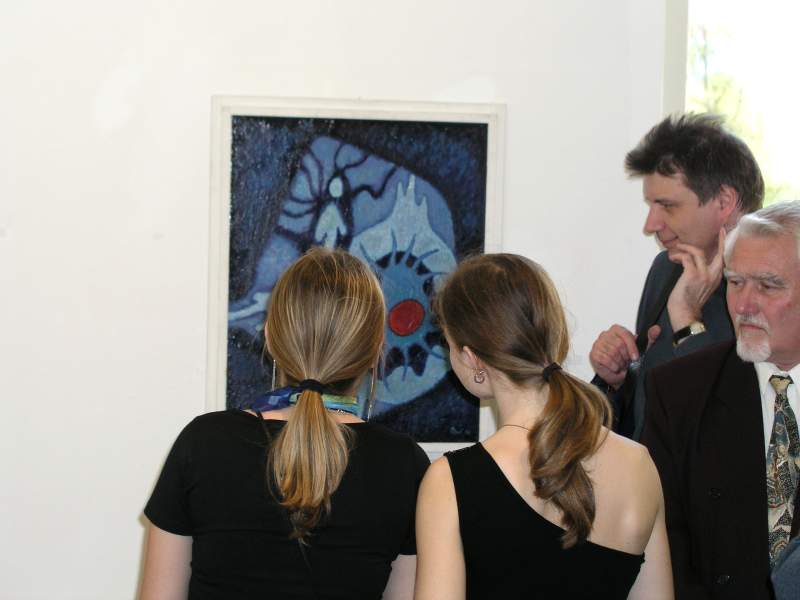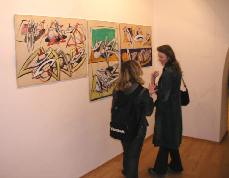 First exhibited paintings were works of Miroslav Pánek. The first Czech lyric abstractionist. Doctor Valoch , curator of it had a short speech about Pánek's political problems etc.