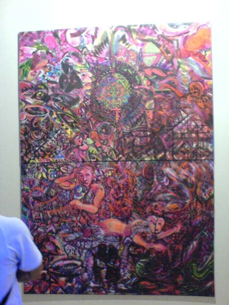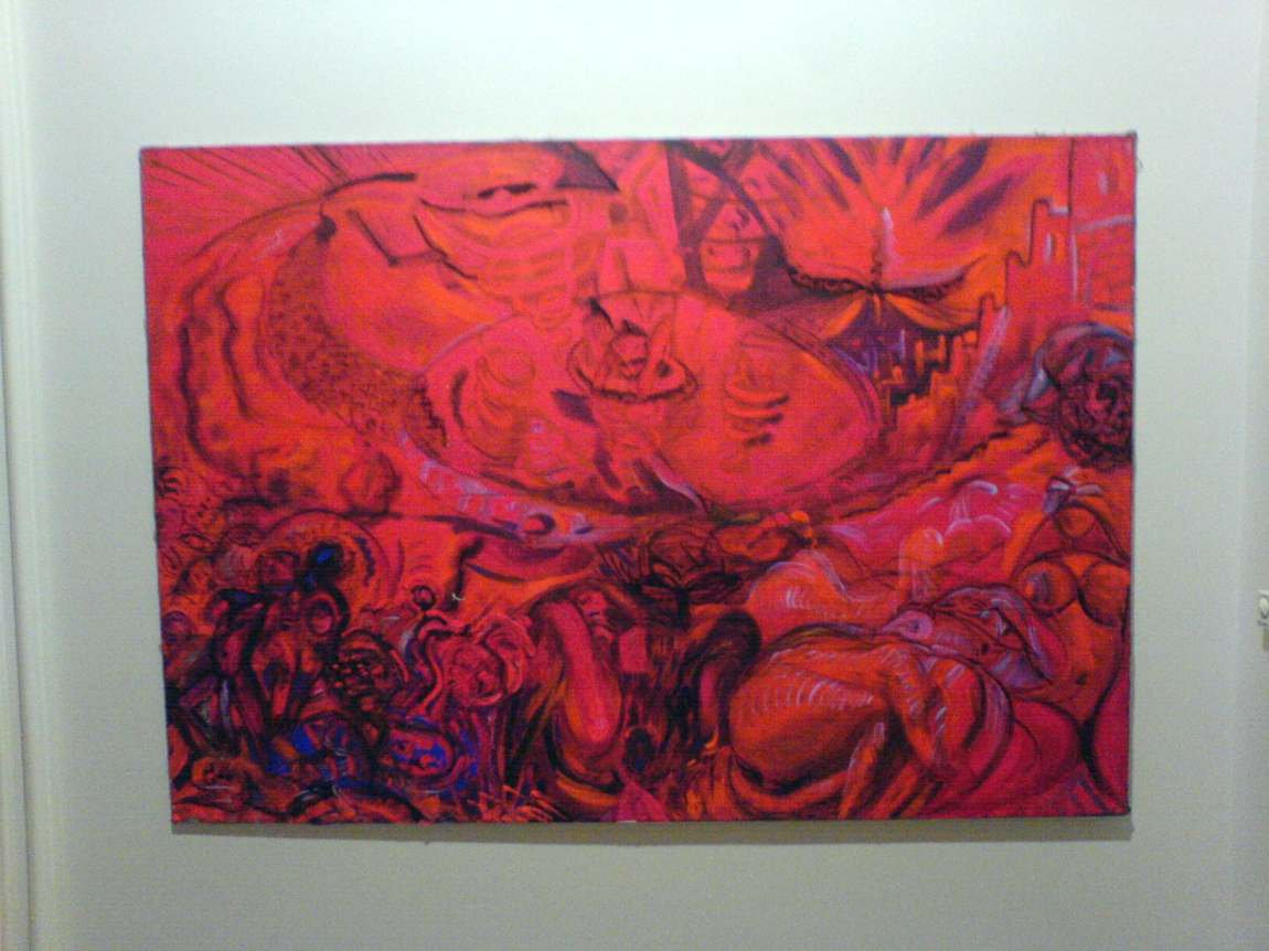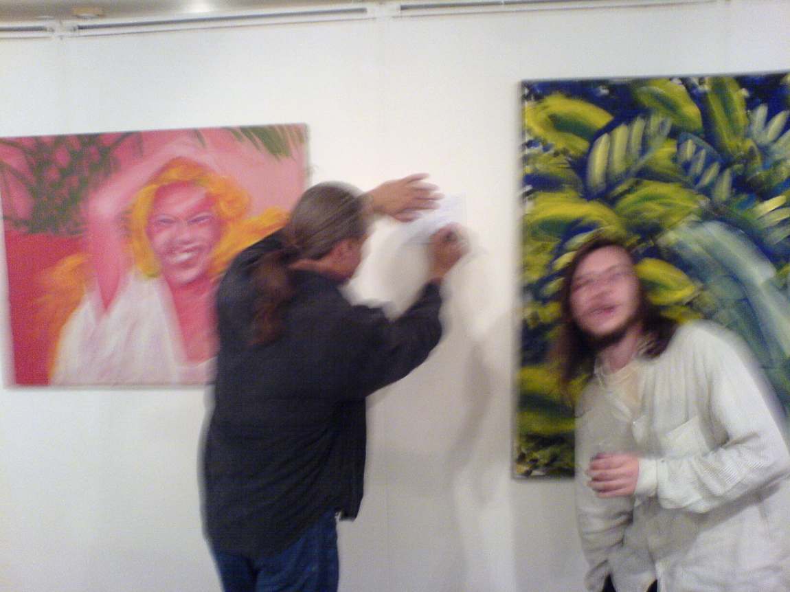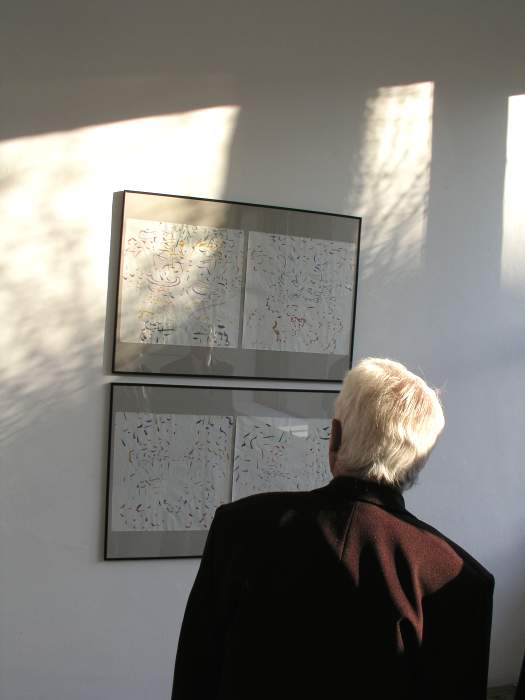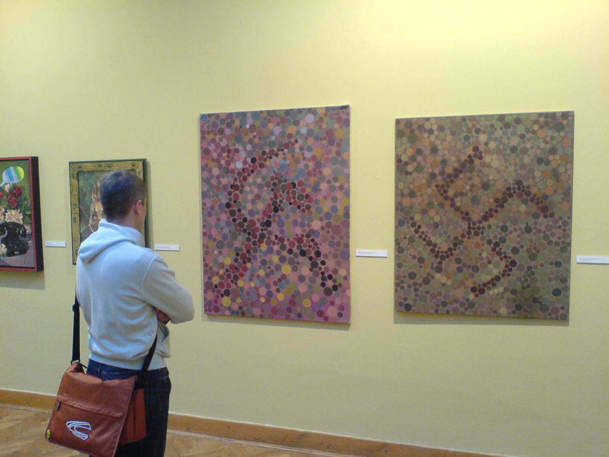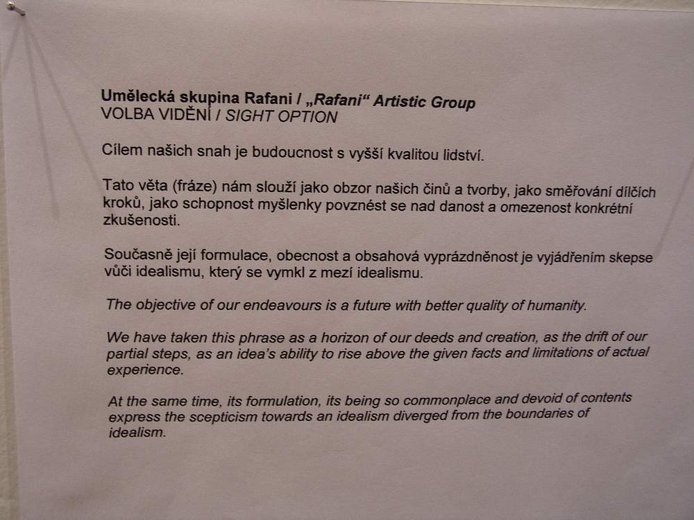 First exhibited paintings were works of Miroslav Pánek. The first Czech lyric abstractionist. Doctor Valoch , curator of it had a short speech about Pánek's political problems etc.