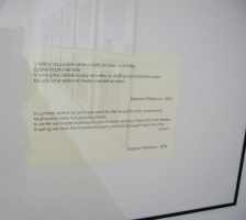 I have heard some negative opinions of young artists to installation ("...hey dude, it is under a glass, just like Mona Lisa"). The reasons of secure adjusting are acceptable - and so rather under such glass than nothing. Unfortunately - no wine, no water, no snacks on the table...