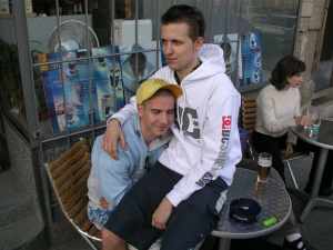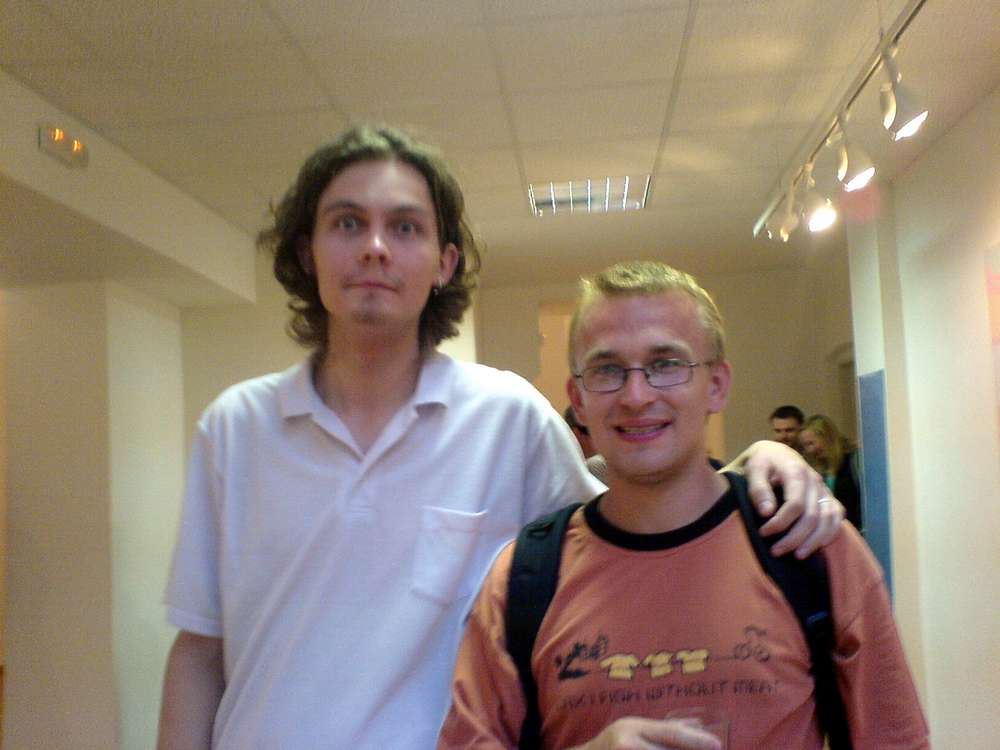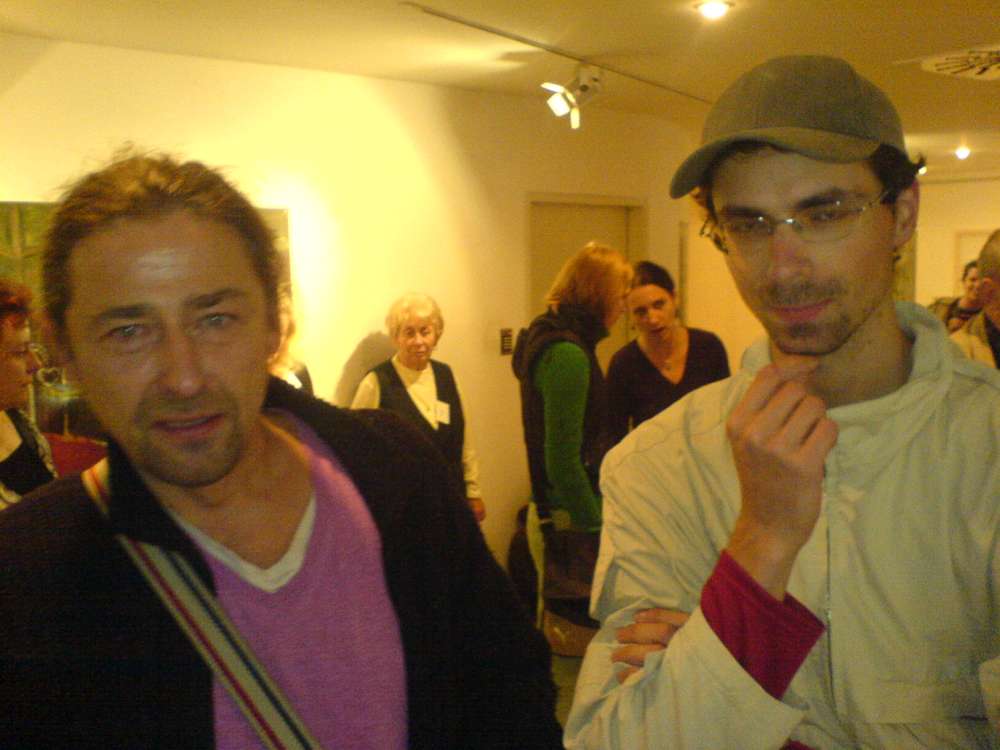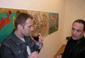 One of the finalists of Czech Pop Idol Petr Poláček. Is he interested in contemporary painting? (On the fig with comic Patrik Hezucký)