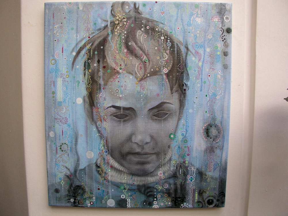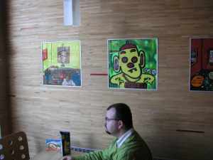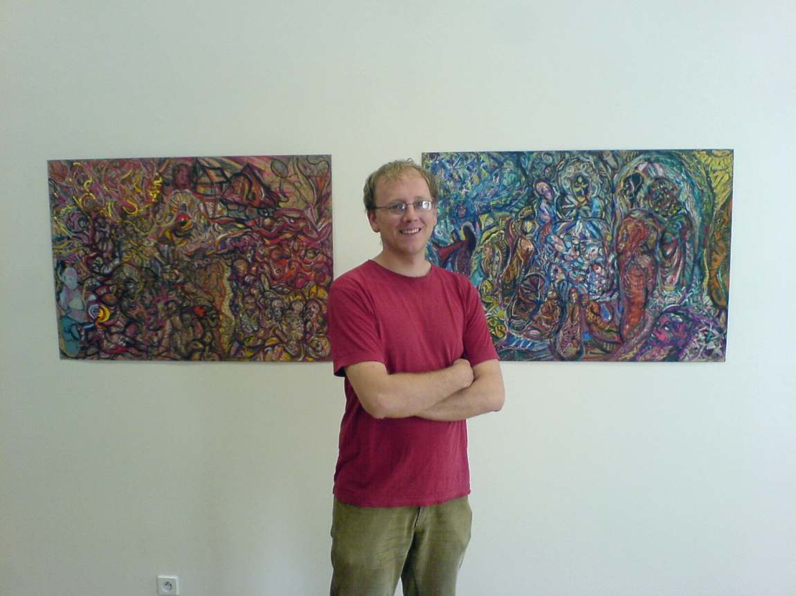 His acrylic paintings are picture of himself - good guy, who is fun with and who has been studying at Kvíčala´s studio.