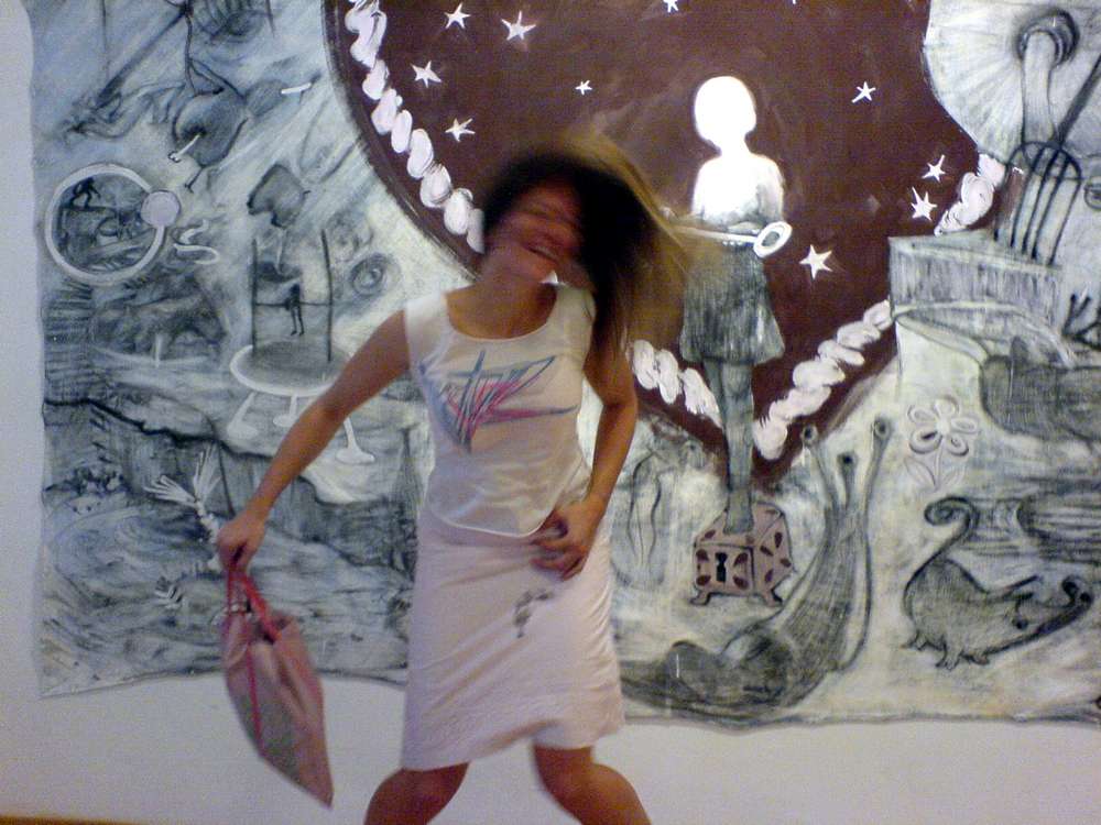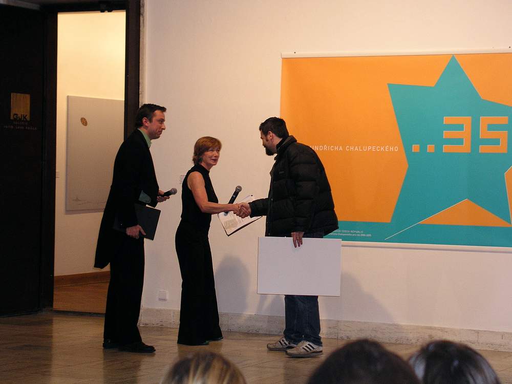 At about 10 pm was the winner known. These three girls are the finalists: Štěpánka Brodecká (VŠUP Prague), Andrea Kvasnicová (VŠVU Bratislava) a Jana Kochánková (Academy Prague). Who did mark out the winner? The party visitors! And the winner is: Andrea Kvasnicová from Slovakia. She obtained 20.000,- and a trip to Paris, many similar wins obtained also people who were boozing in premium bars and sending lots gotted by the long drinks, and also alloted visitors of this evening. A message: You can both booze expensive drinks and make art to merit the same reward! Another descent of fine arts.