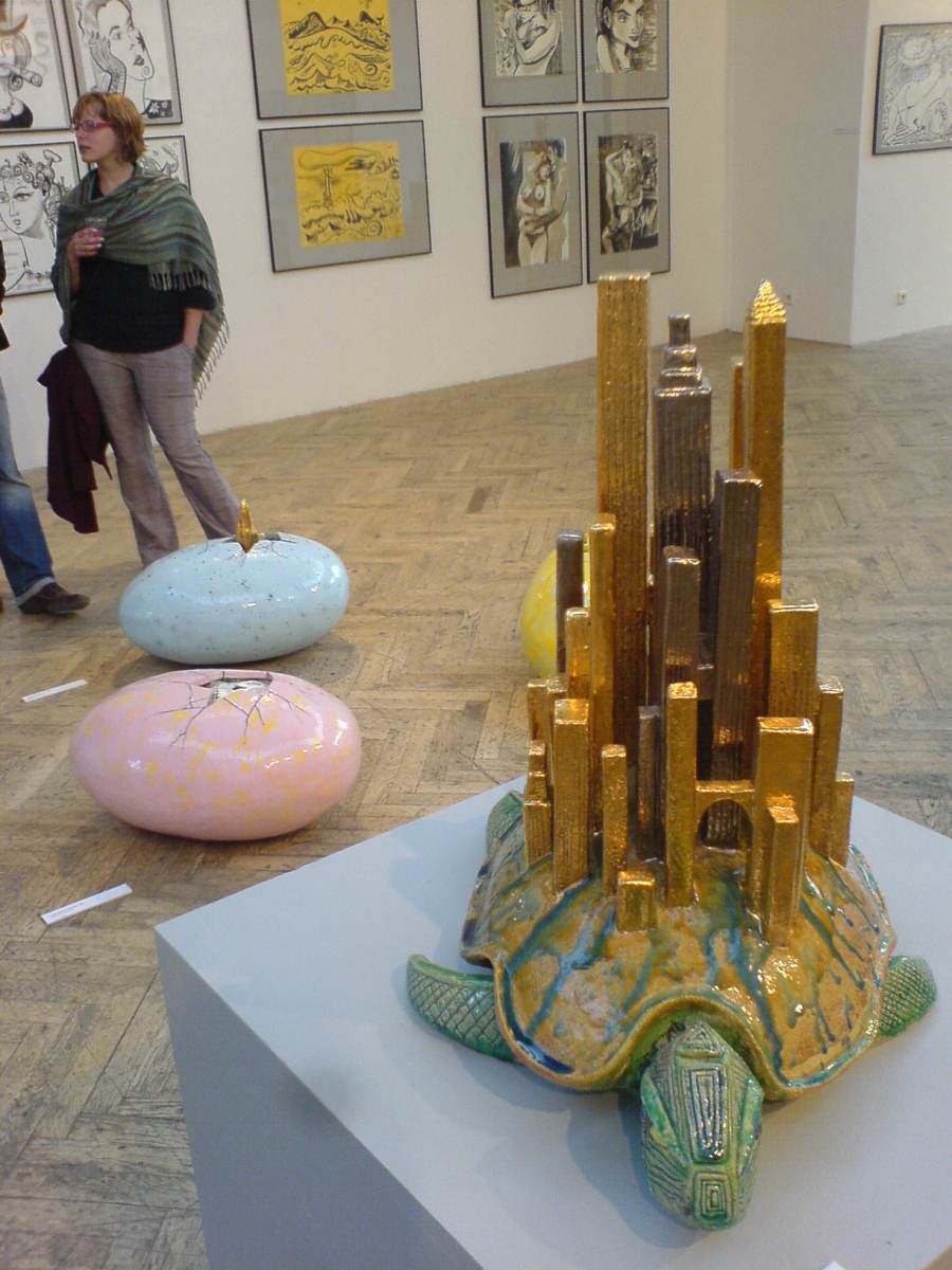 I don't know where did you spend your days on holiday, dear friends, but watch a report from a few of actions in South Bohemia. Firstly let's look on the exhibition of southbohemian art schools (high schools) which took place in communistic House of Culture "Metropol" in České Budějovice (Budweiss). The best works came from Český Krumlov school (St. Anežka) There was also exhibited a diploma work from Educational Faculty of Southbohemian University. It gives a straight message: when you leave high school, leave the region too.